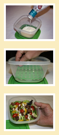 Excess dressing drains off, keeping your salad crisp!